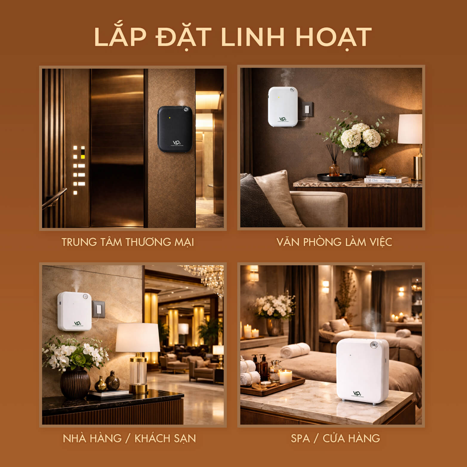 - Tiện Lợi và Thông Minh: Máy dễ dàng điều khiển bằng ứng dụng điện thoại, giúp bạn chủ động điều chỉnh hương thơm trong không gian sống của mình.
