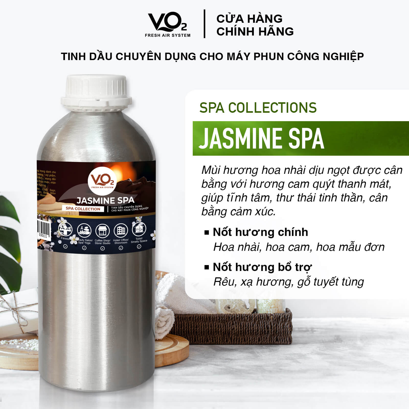 Tinh Dầu VO2 Spa Collection - Jasmine Spa mang đến sự thanh lịch và quyến rũ từ hương hoa nhài tự nhiên. Sản phẩm là lựa chọn hoàn hảo để tạo không gian thư giãn, sang trọng và đầy lôi cuốn, giúp cải thiện tinh thần và tái tạo năng lượng.